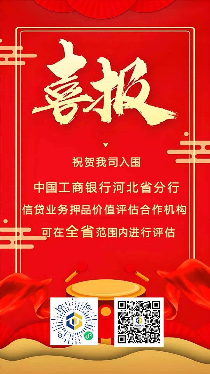 喜報|我司入圍中國工商銀行河北省分行信貸業(yè)務(wù)押品價(jià)值評估合作機構
