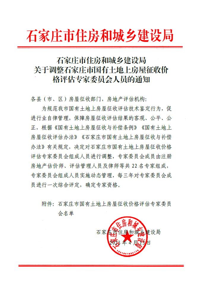 我司董事長(cháng)魏宏文女士為石家莊市國有土地上房屋征收價(jià)格評估專(zhuān)家委員會(huì )副主任委員