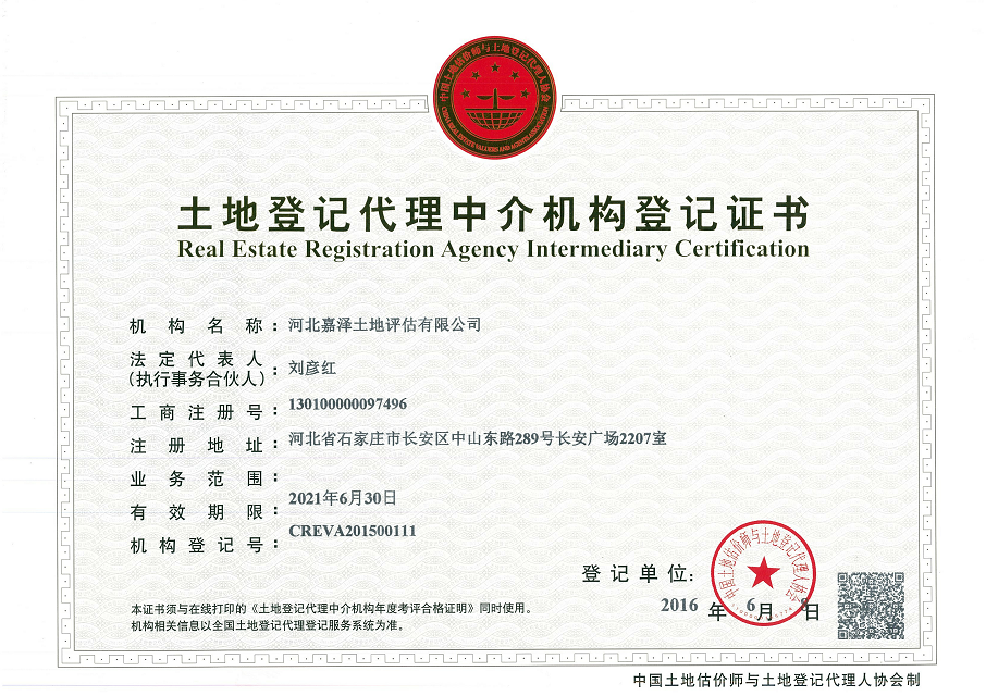 河北嘉澤房地產(chǎn)資產(chǎn)評估有限公司成立于2003年1月21日,是由國家首批注冊房地產(chǎn)估價(jià)師發(fā)起成立、河北省最早的專(zhuān)業(yè)房地產(chǎn)價(jià)格評估機構之一。注冊資金400萬(wàn)元,同時(shí)具有房地產(chǎn)評估一級資質(zhì)、土地評估五星資信等級、資產(chǎn)評估AAA級資信等級、司法鑒定資格、工程造價(jià)資格、房地產(chǎn)經(jīng)紀資質(zhì)、不動(dòng)產(chǎn)登記代理資質(zhì)、測繪乙級資質(zhì)等多項專(zhuān)業(yè)資質(zhì)資格。擁有注冊房地產(chǎn)估價(jià)師、注冊土地估價(jià)師、注冊咨詢(xún)工程師、注冊資產(chǎn)評估師、全國房地產(chǎn)經(jīng)紀人、土地登記代理人、注冊會(huì )計師、注冊城鄉規劃師、注冊造價(jià)工程師、測繪工程師、英國皇家特許測量師等資質(zhì)的專(zhuān)業(yè)人才上百人。業(yè)務(wù)覆蓋全國。全國優(yōu)秀一級房地產(chǎn)評估資質(zhì)聯(lián)盟-中估聯(lián)行河北省唯一成員機構。