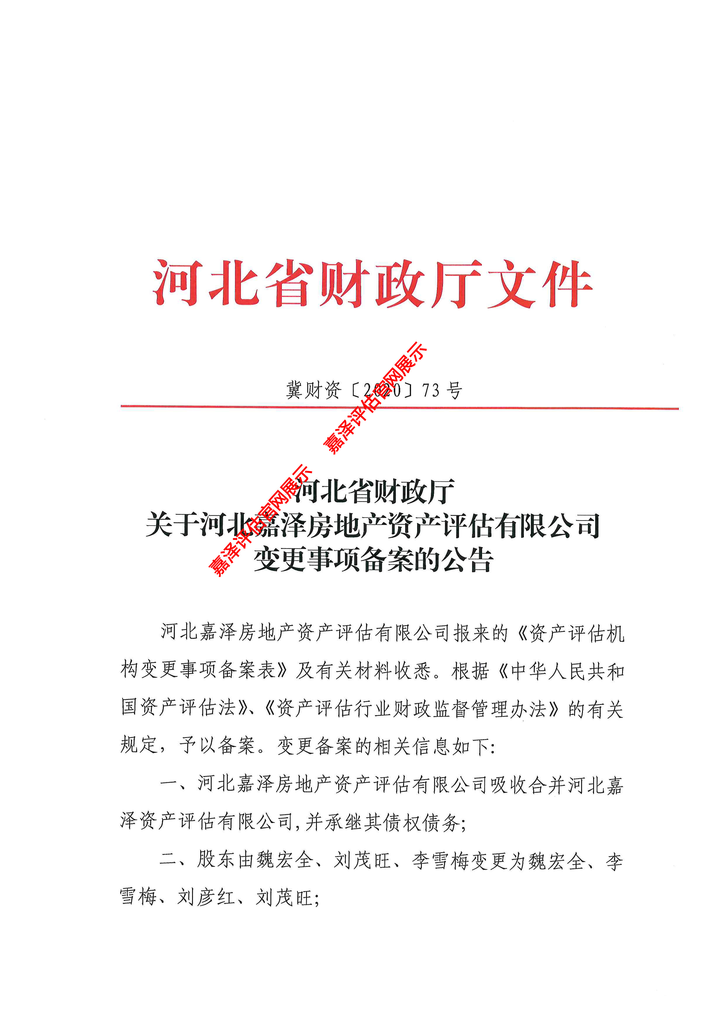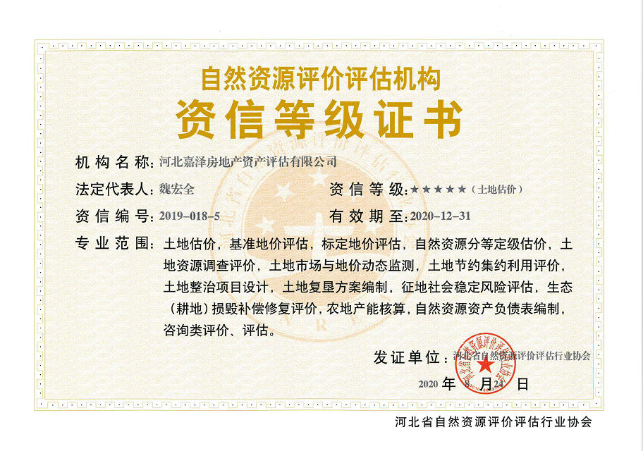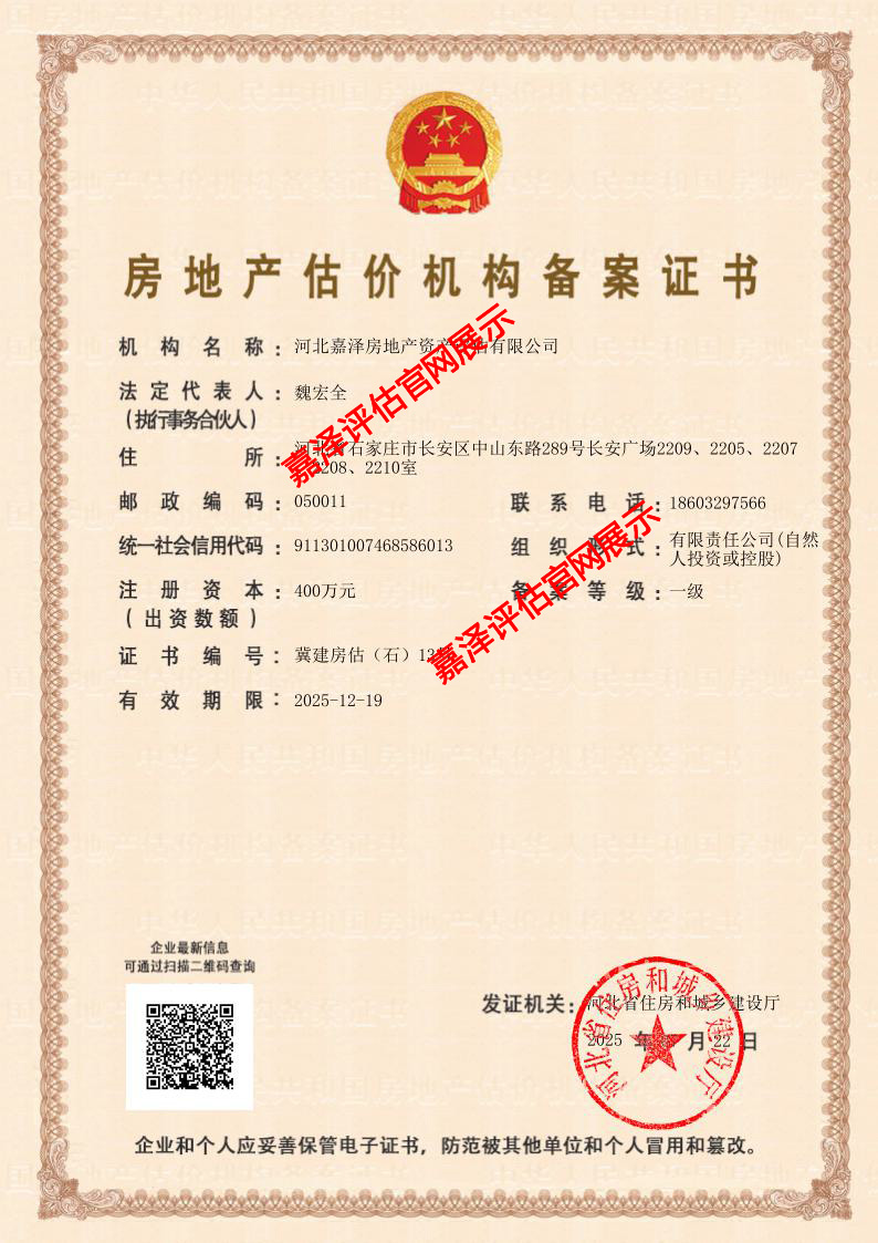 河北嘉澤房地產(chǎn)資產(chǎn)評估有限公司